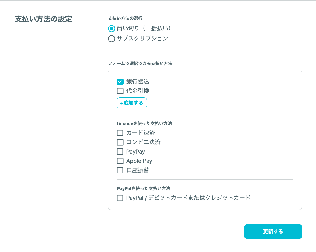 「支払い方法の設定」より、「カード決済」もしくは「PayPal / デビットカードまたはクレジットカード」のチェックを外す