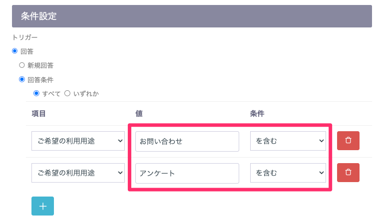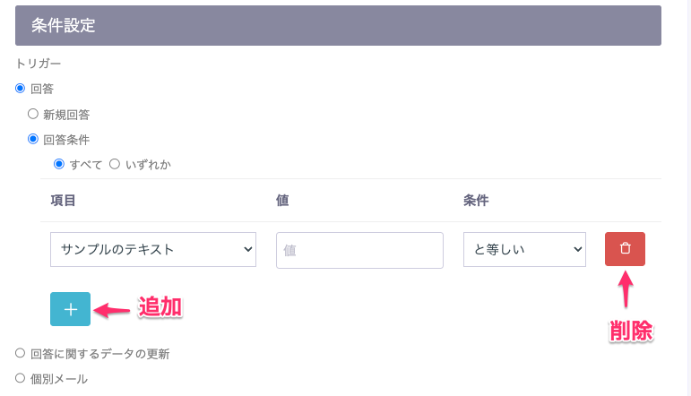 - 条件にしたい回答数に応じて項目を追加