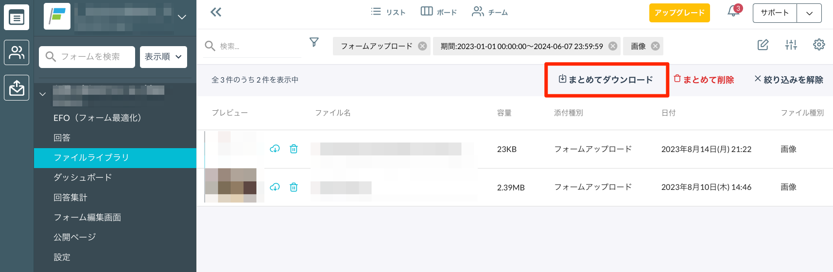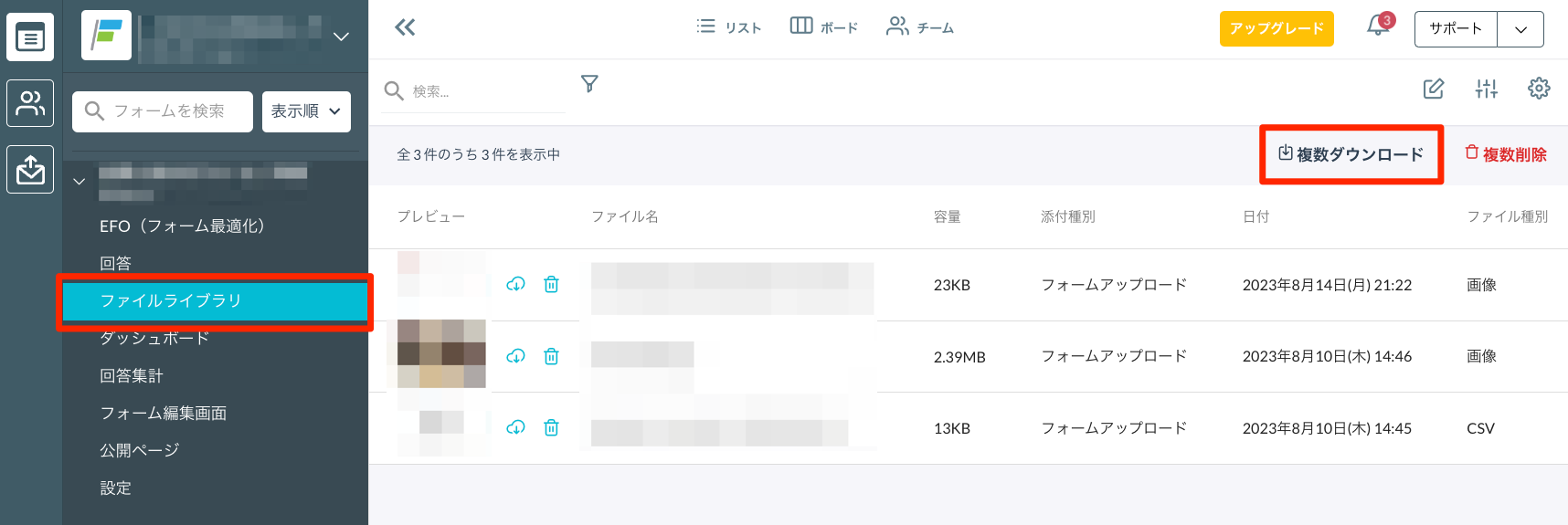 顧客情報のうち、添付ファイルのみをフォームごとに出力する
