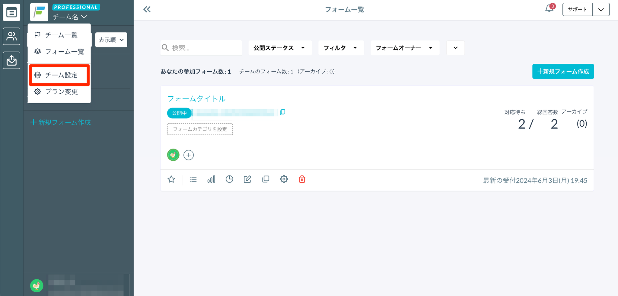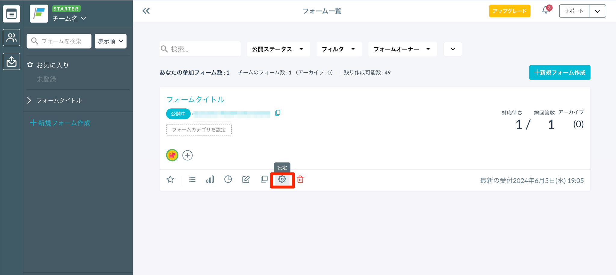 PayPal連携画面またはfincode連携画面からフォーム一覧画面に戻り、フォーム設定画面を開きます。