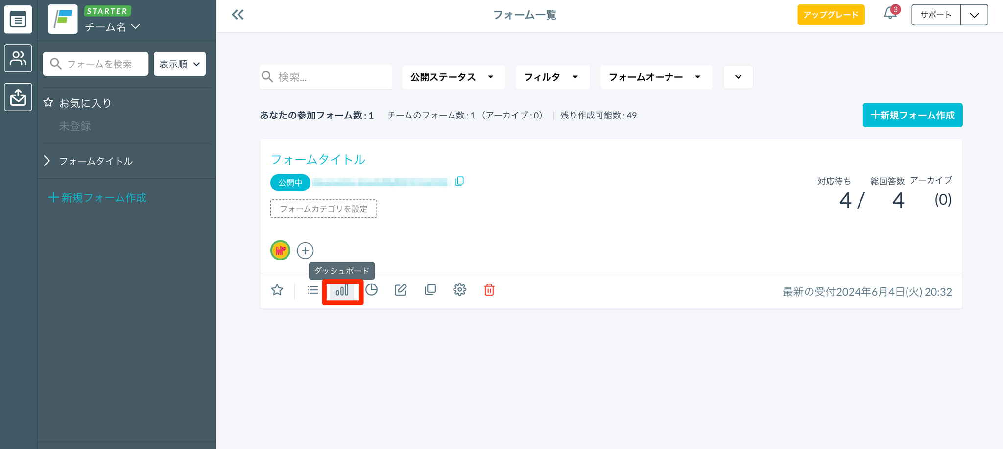 - フォーム一覧画面からダッシュボード画面を開きます。