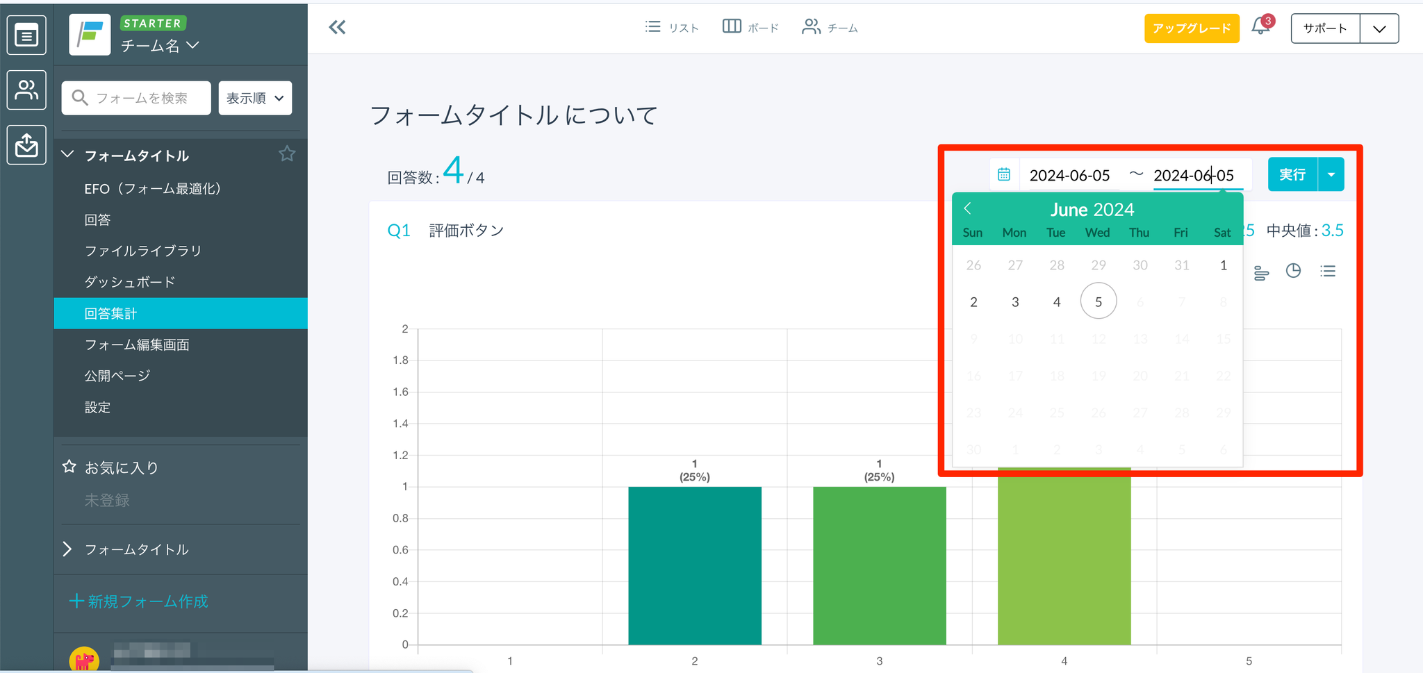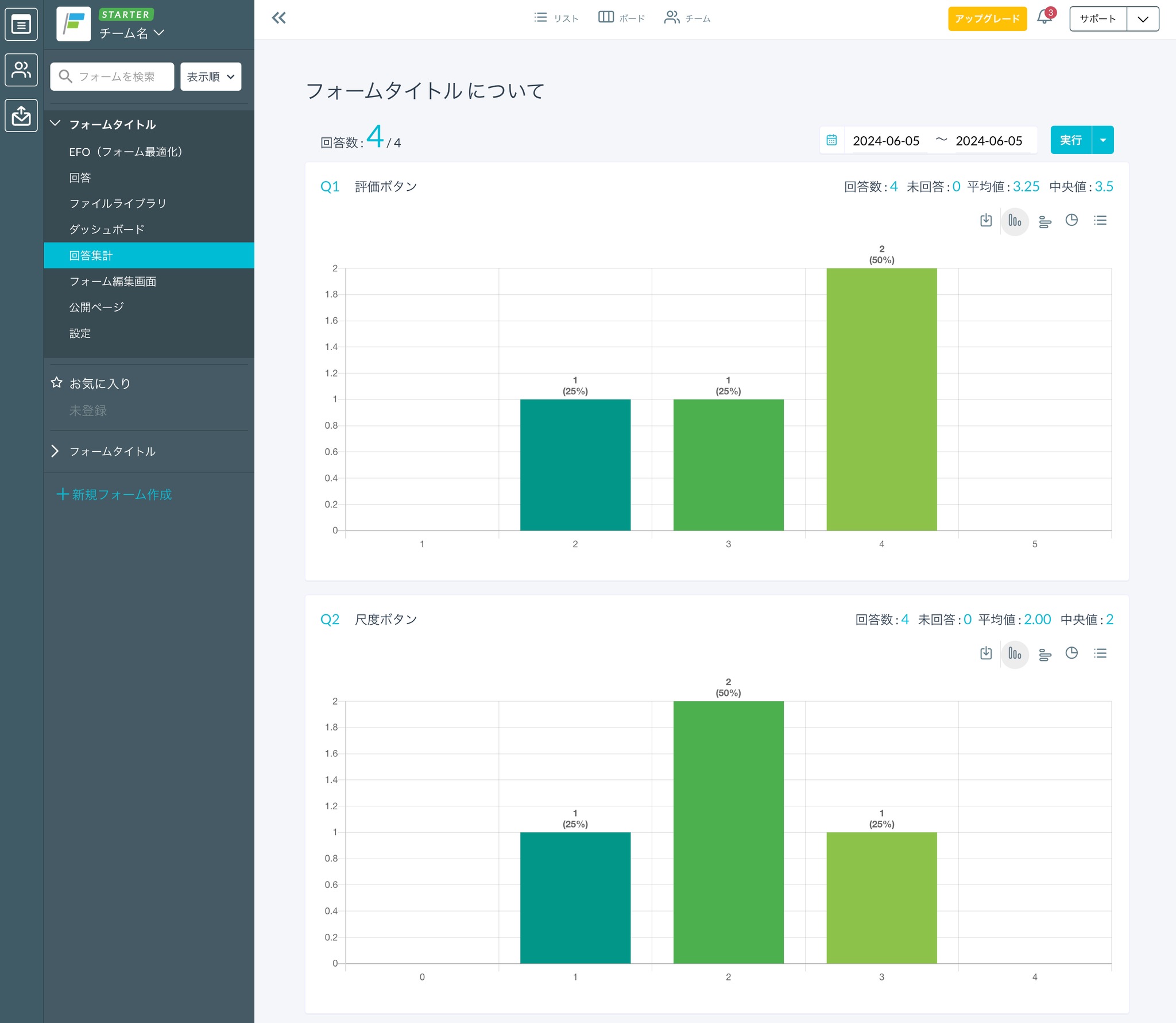 有料プラン(BEGINNER、STARTER、PROFESSIONAL)の場合、フォームの回答データをグラフで確認できます。
