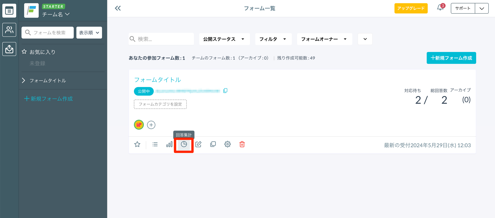 - フォーム一覧画面から回答集計画面を開きます。