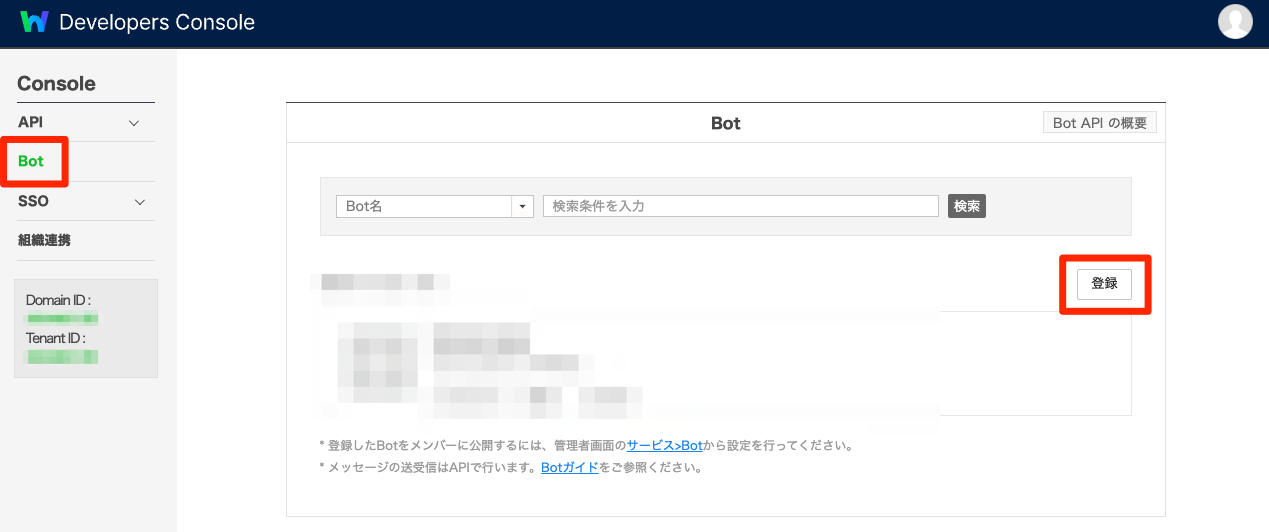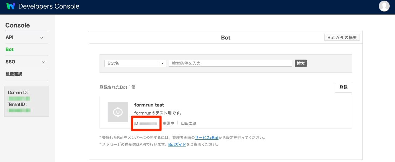 - Botの登録が完了すると、「Bot ID」が取得できます。