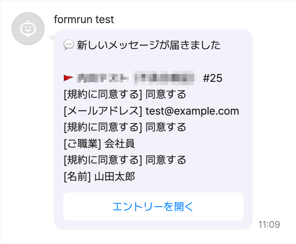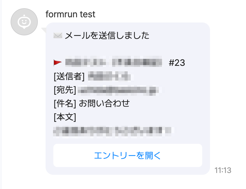 フォームに回答やformrun上でメールの送受信等があった場合に、LINE WORKSに通知できる機能です。