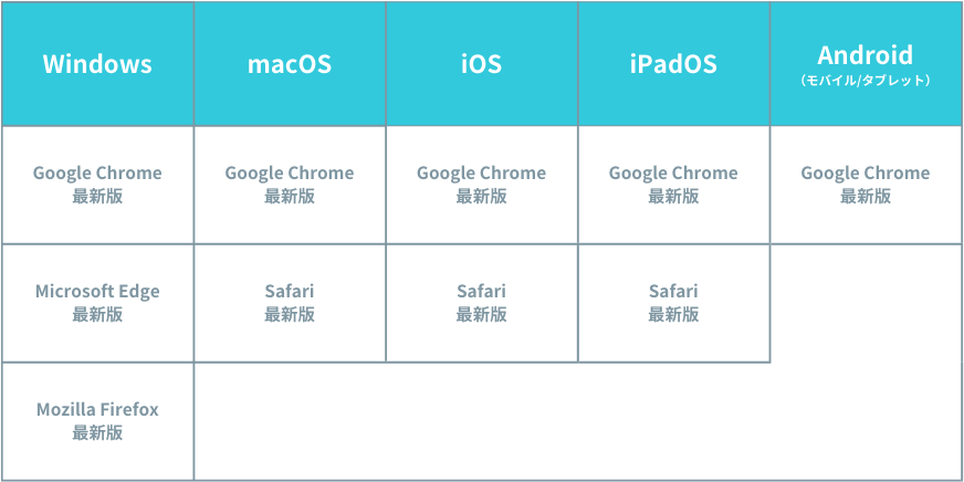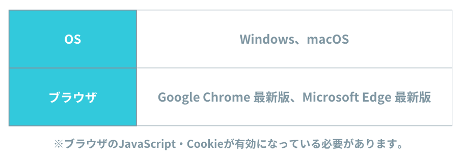 formrunの管理画面を利用するユーザーの推奨動作環境は以下のとおりです。