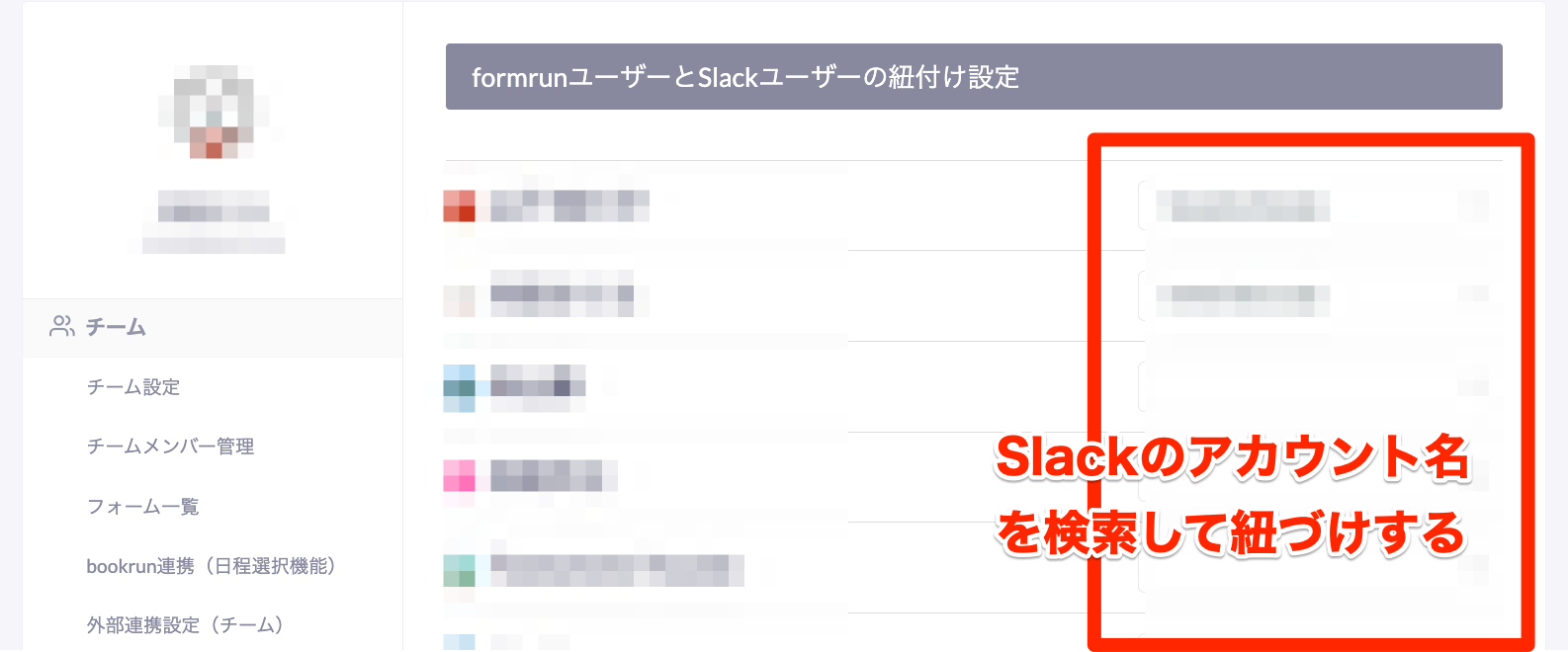 - formrunのアカウントとSlackのアカウントを紐付け、「保存する」をクリックする。
