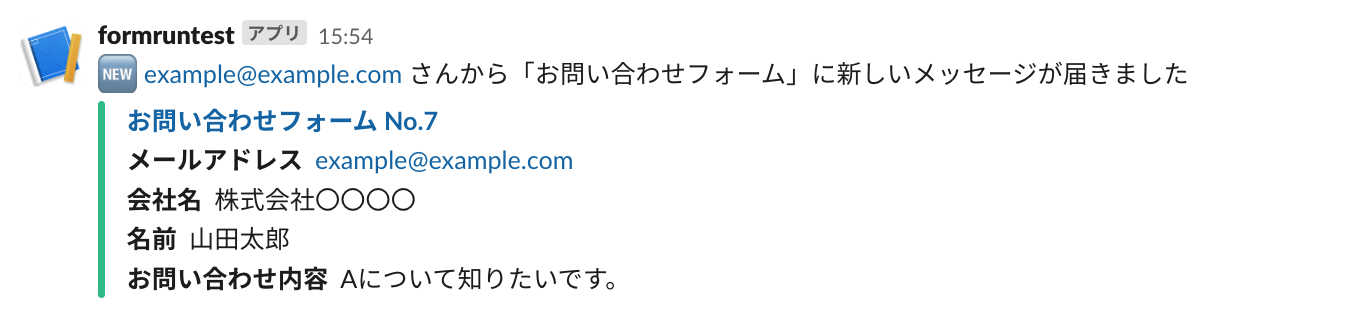 フォーム回答やメールの送受信があったときに、チャンネルに通知が届くようになりました。