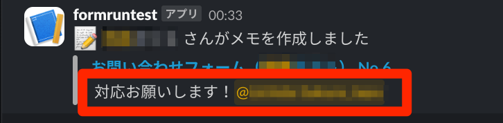 フォームに回答やformrun上でメールの送受信等の通知、またメモにメンションをつけてSlackに通知できる機能です。