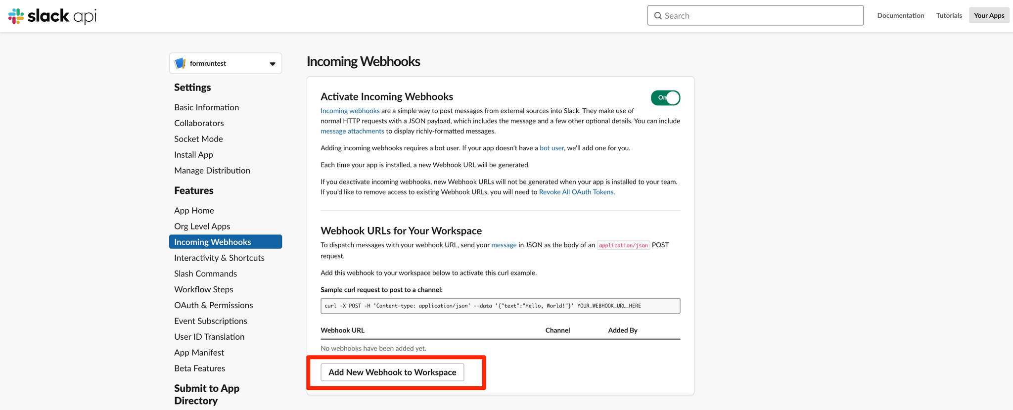 - Incoming Webhooksにて「Activate Incoming Webhooks」をONにする