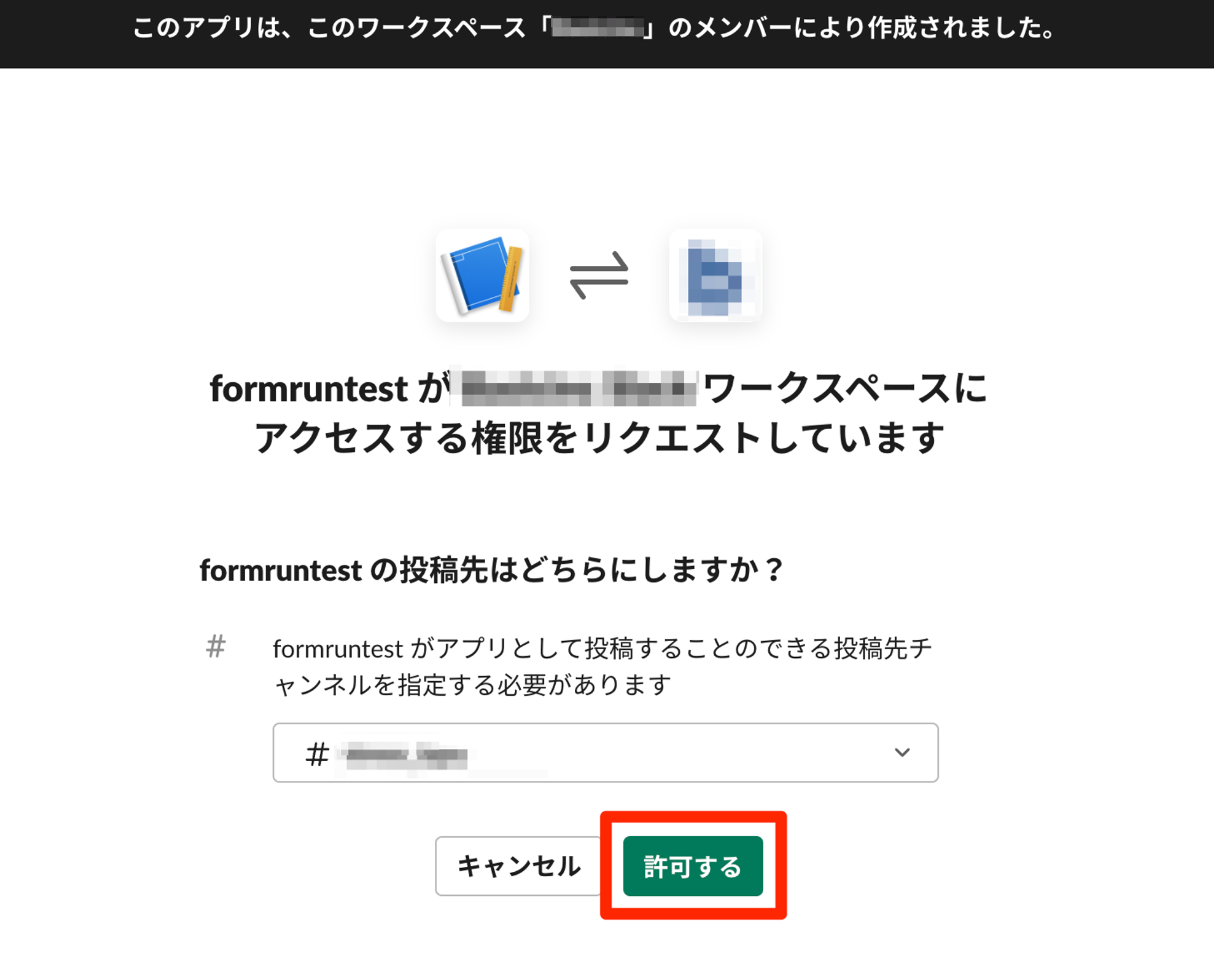 - 通知連絡先のSlackチャンネルを選択し、「許可する」をクリックする