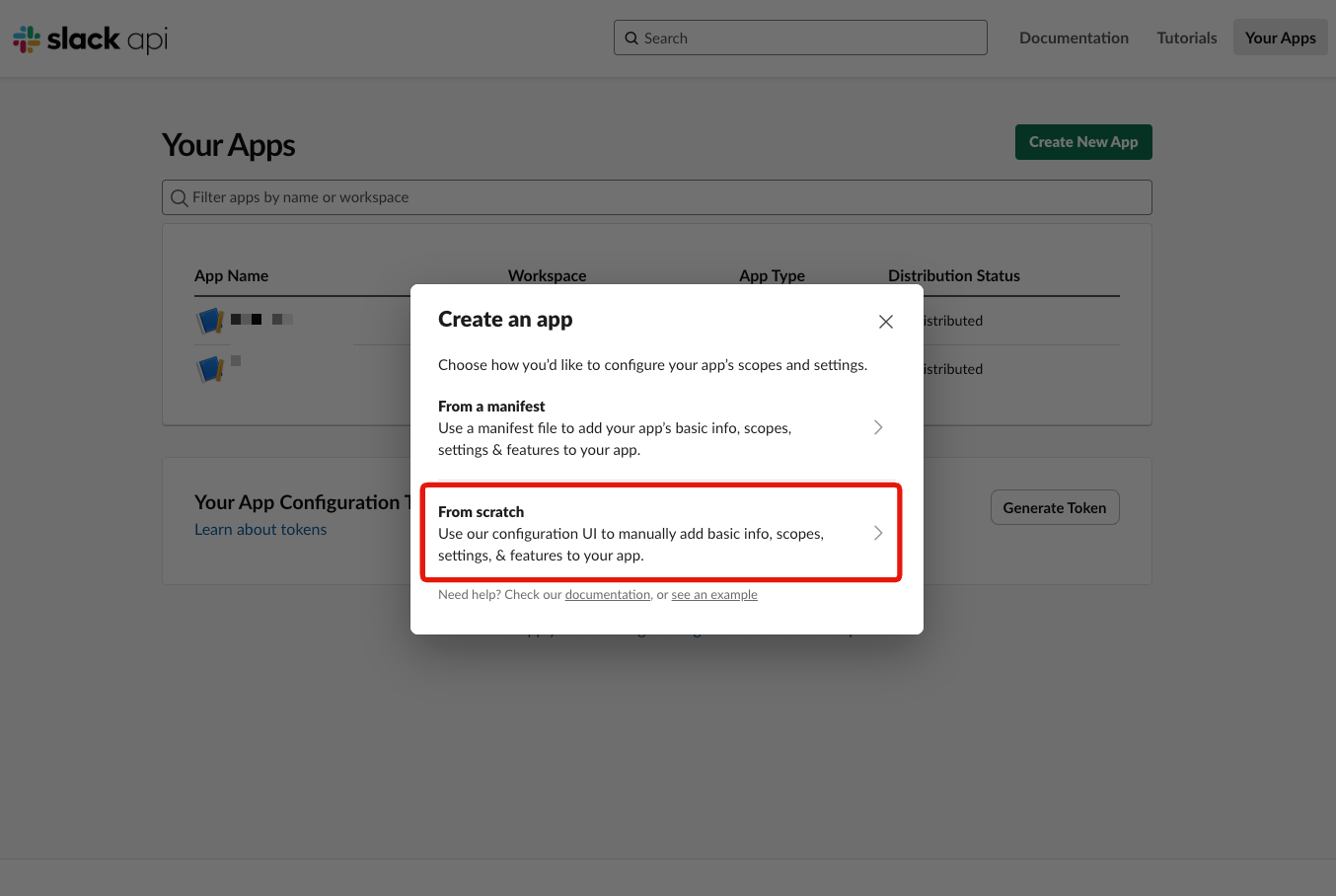 - 「Create an app」と表示されるモーダルにて「From scratch」を選択する