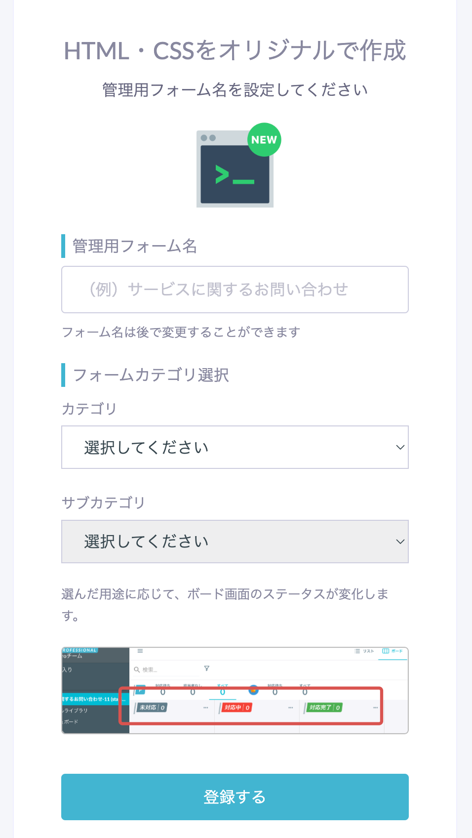 完了後、再度「コード型フォームの紹介」ページに戻っていただき、「コード型フォームを作る」をクリックしてください。