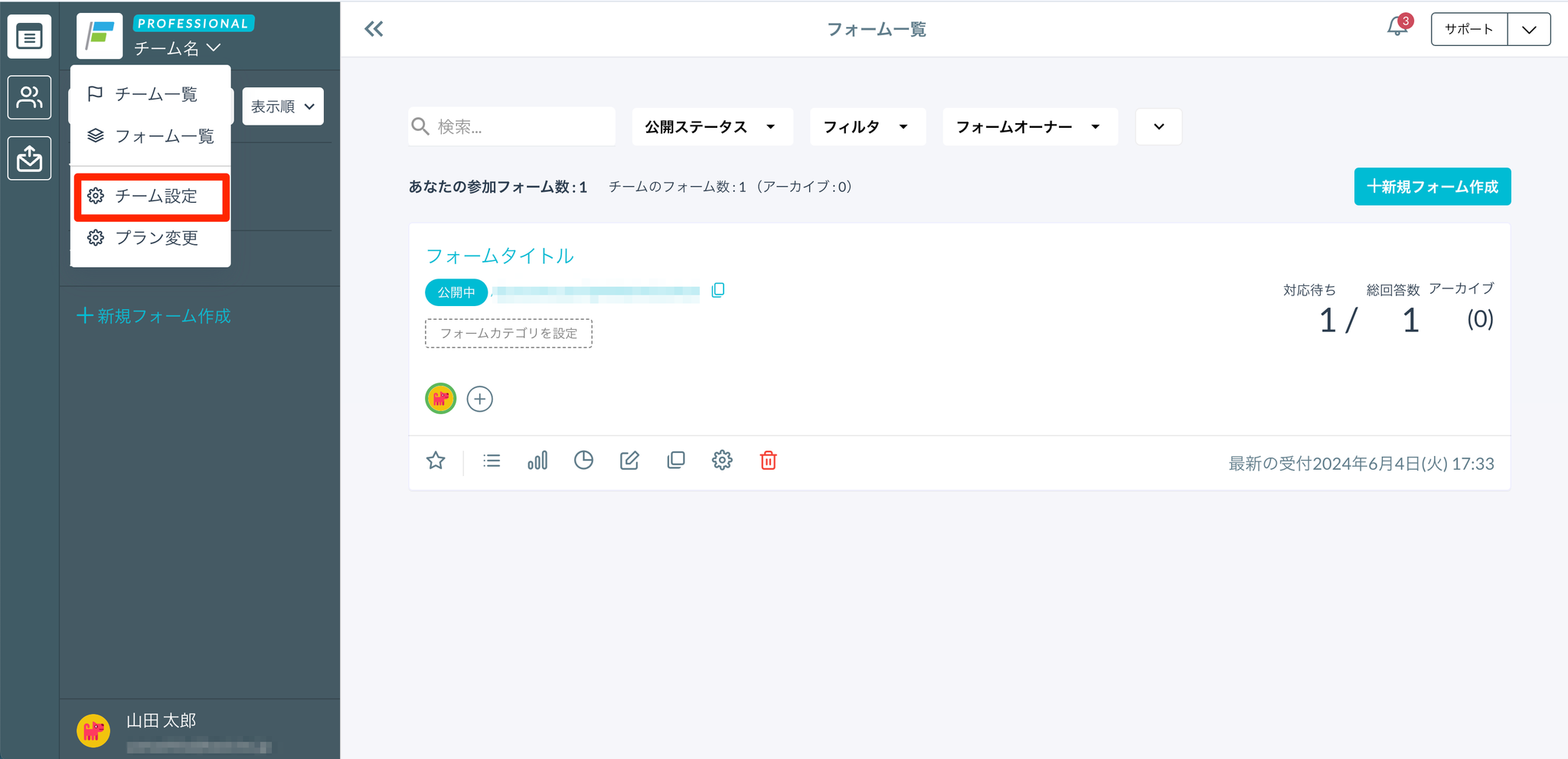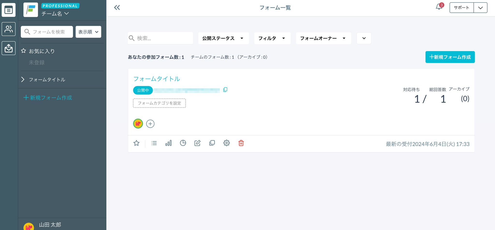 削除したフォームは復元できませんので、ご注意ください。