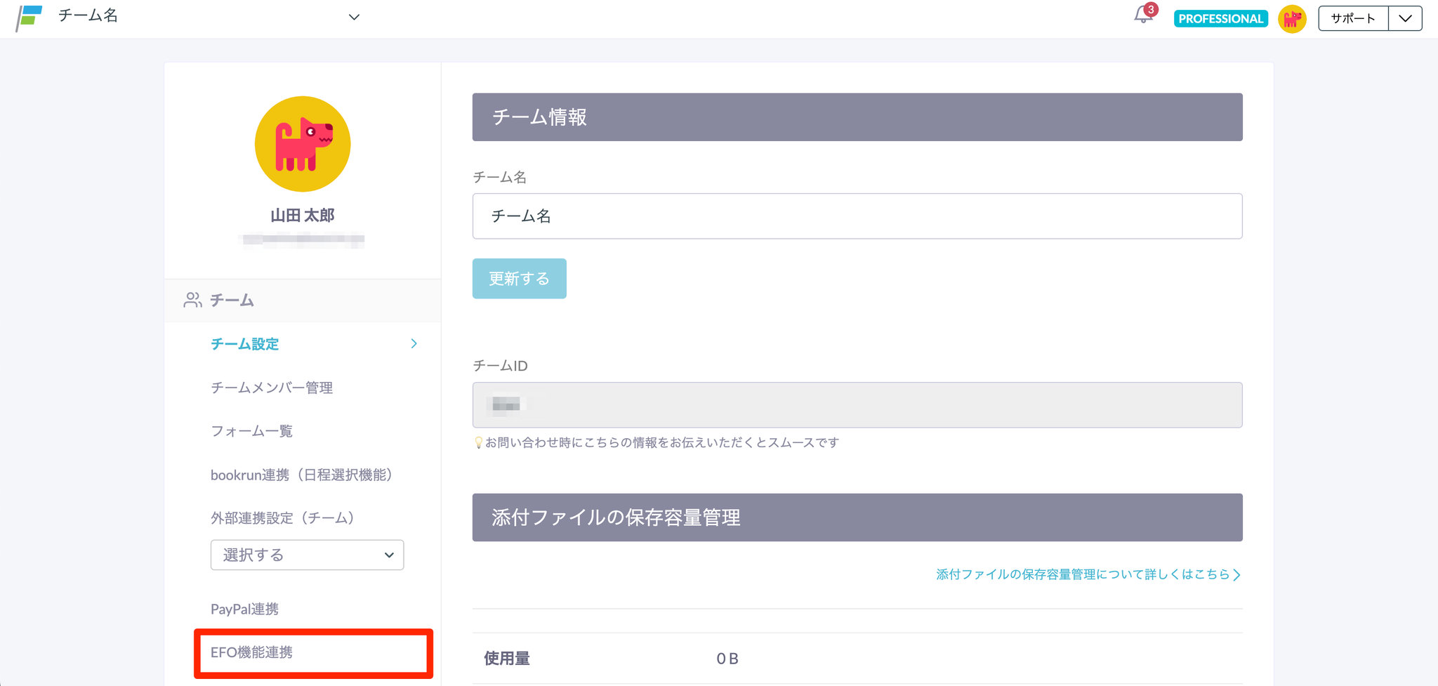 フォーム保存容量追加(PROFESSIONALのみ)
