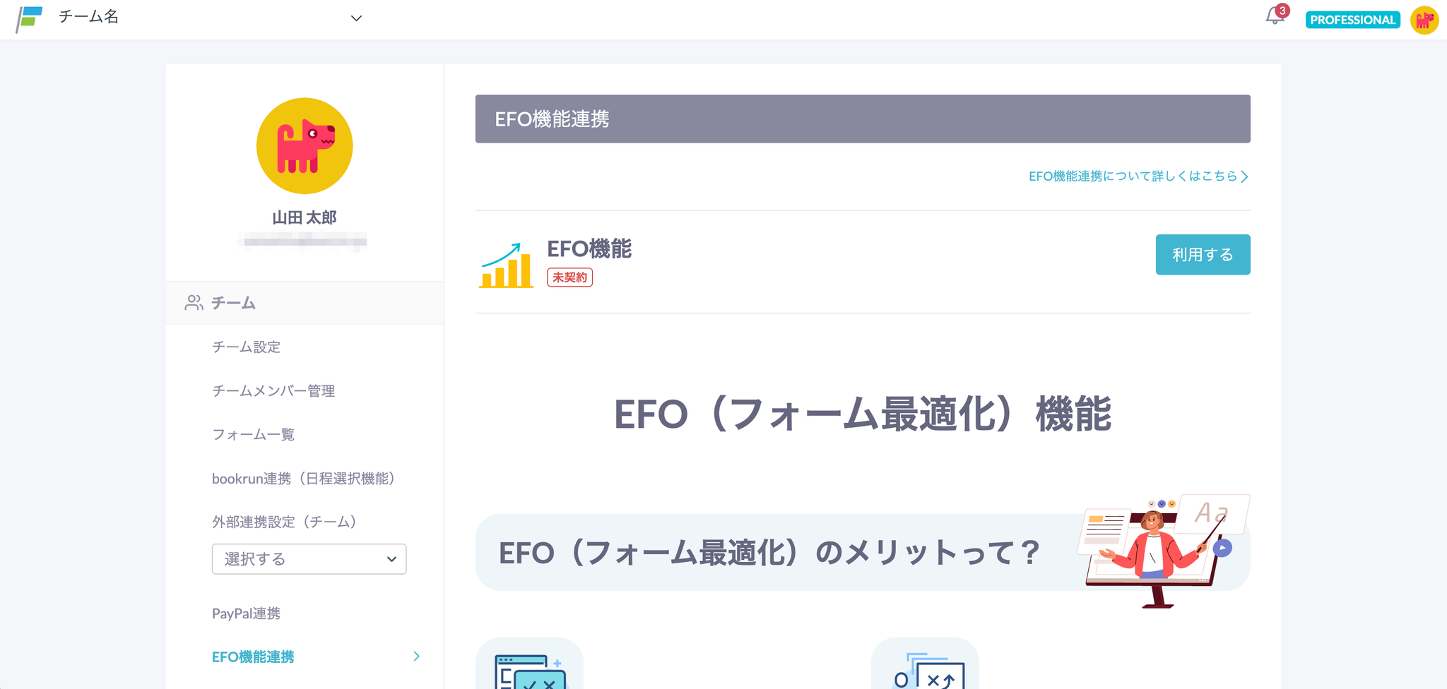 - 左メニューで「EFO機能連携」をクリックします。