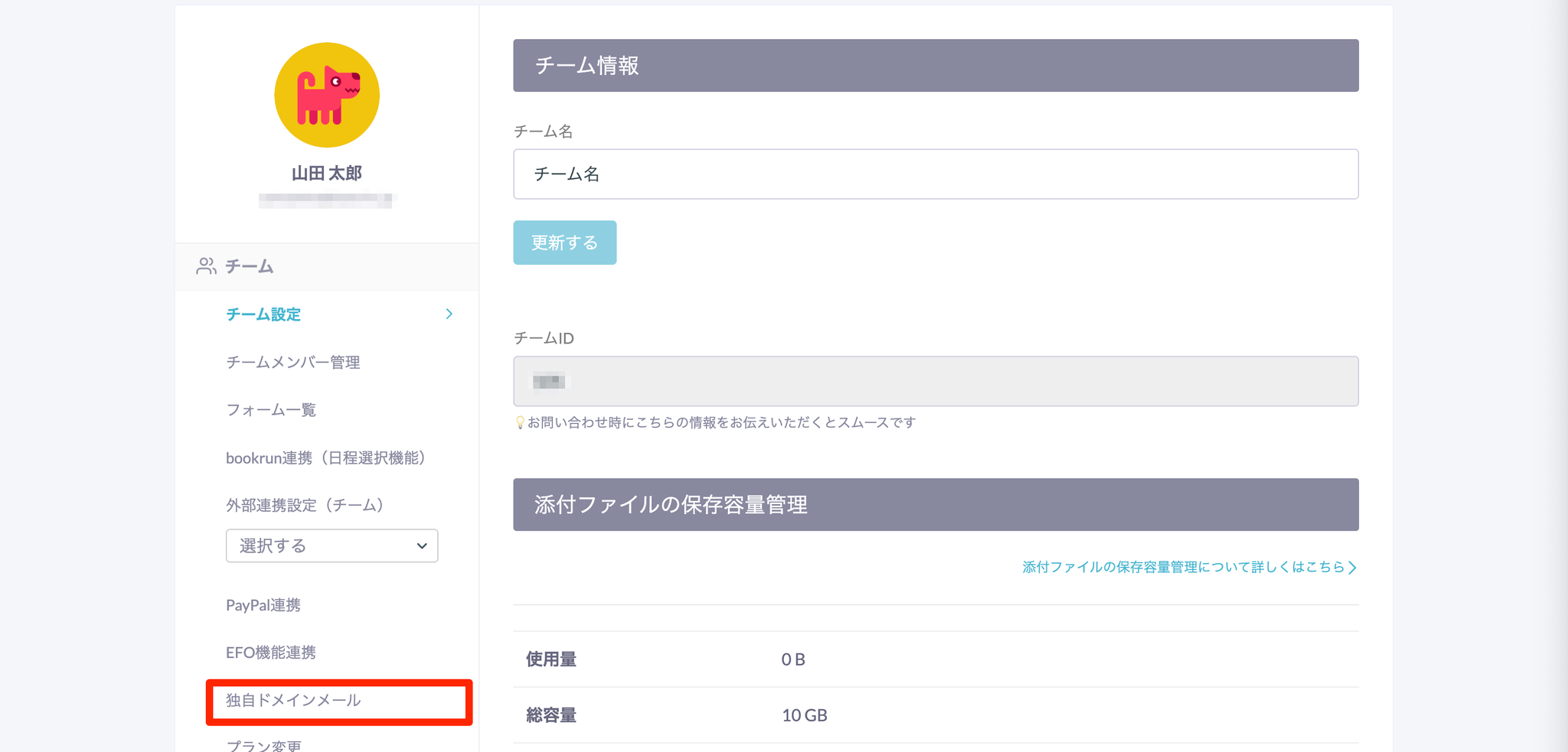 ※独自ドメインメールアドレスは1チームにつき1つのみ登録可能です