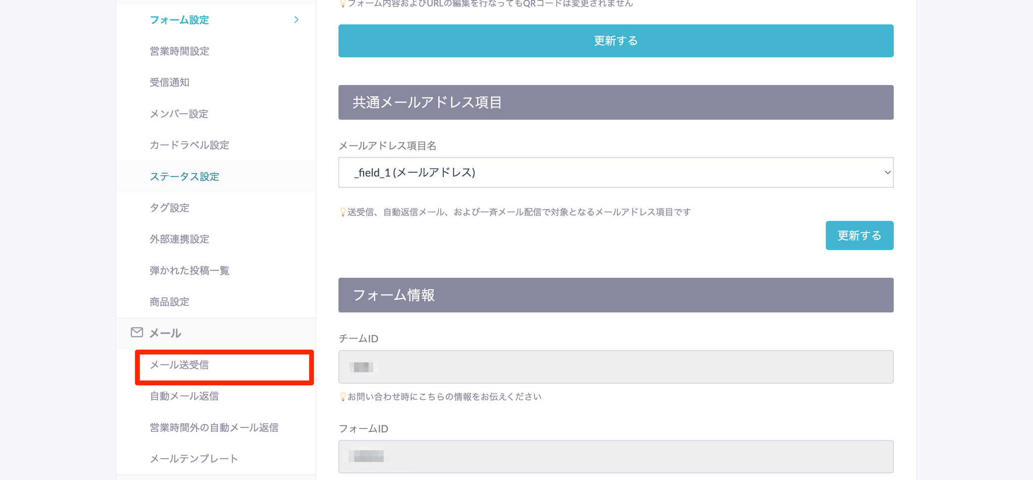 - 「support@xxx.com」をformrun専用のメールアドレスとする