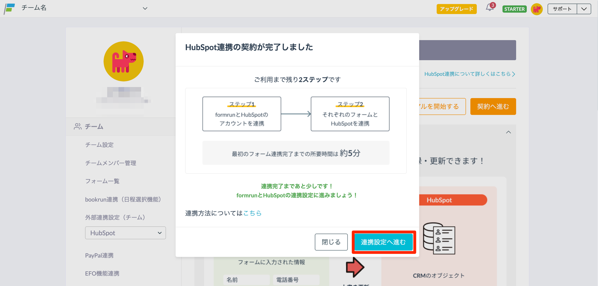 - 契約が完了した後、「連携設定へ進む」をクリックします。