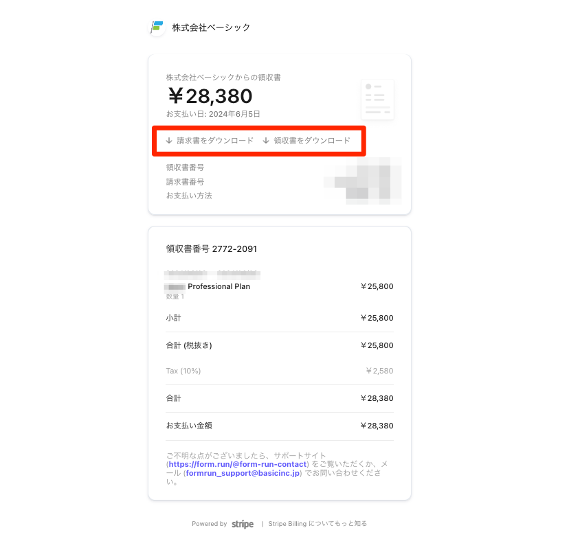 formrunの利用料金の請求書・領収書は以下2つの方法で確認できます。