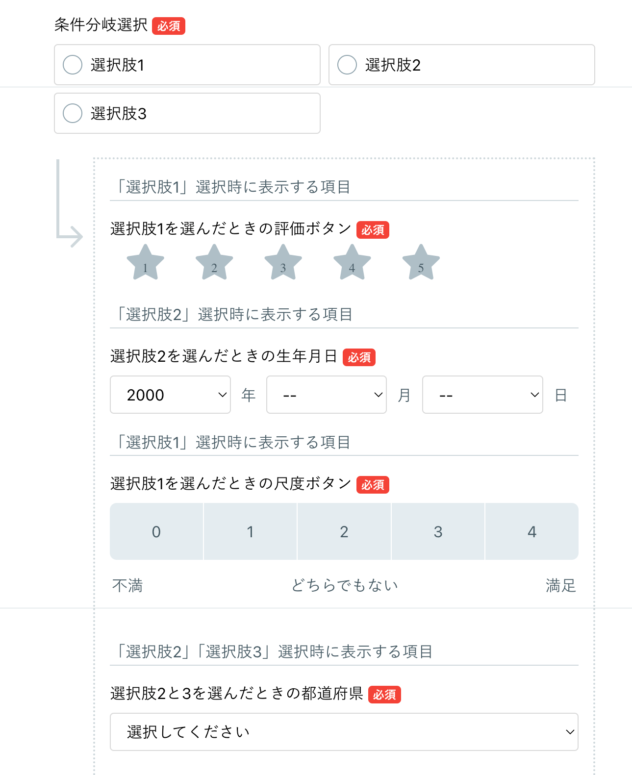回答内容によって表示内容を分岐させる方法