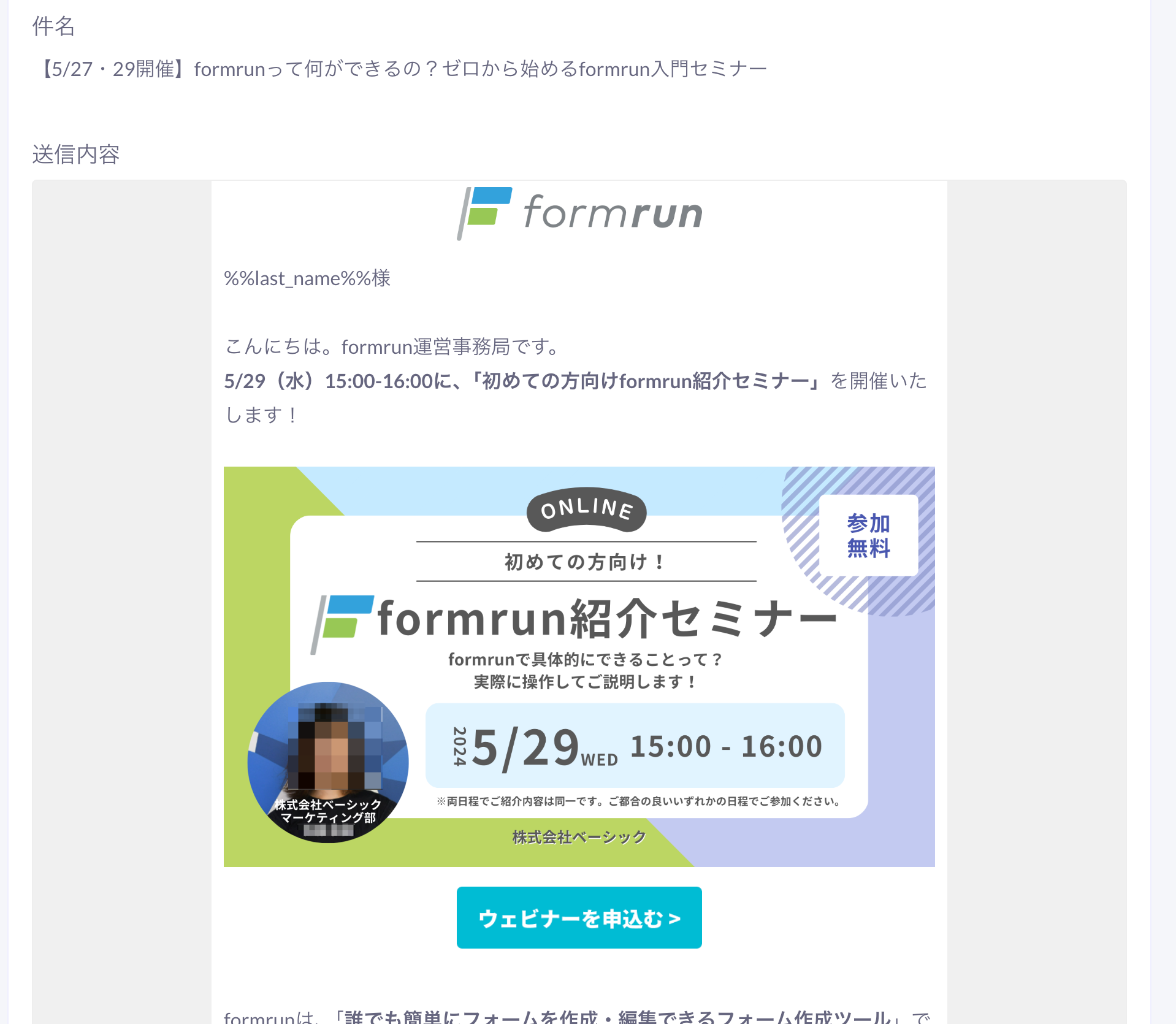 変数などをうまく用いて送信することで、1通1通書く手間が省けます。
