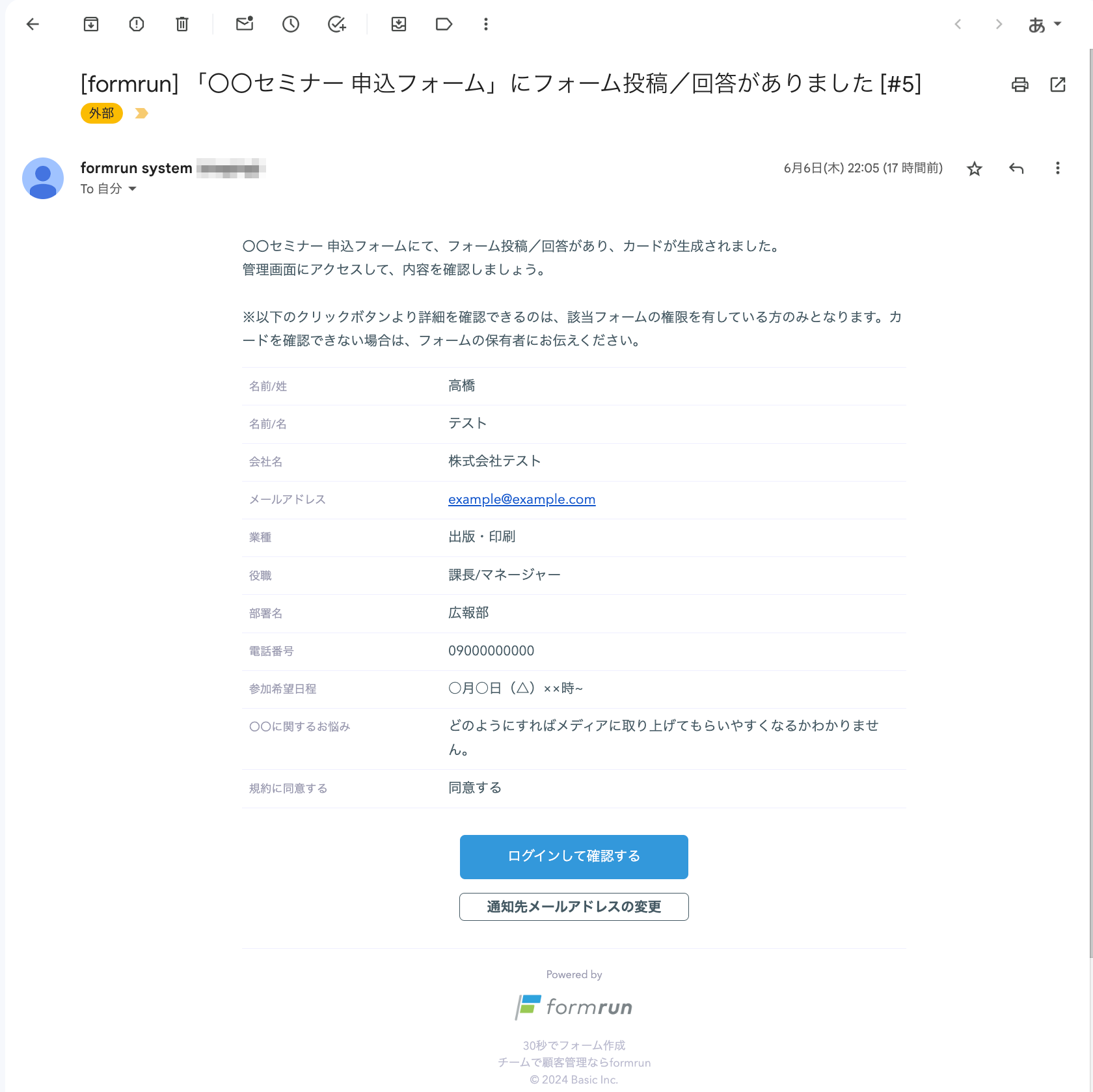 フォームへの回答などをメールで即時に確認でき、より素早いアクションに繋がります。