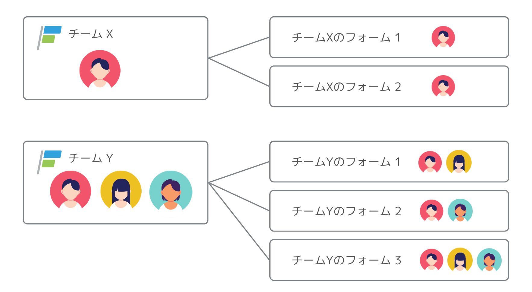 そのチームに紐づくフォームは、そのチームに参加しているアカウントの人のみ編集ができたり、管理画面へアクセスできます。