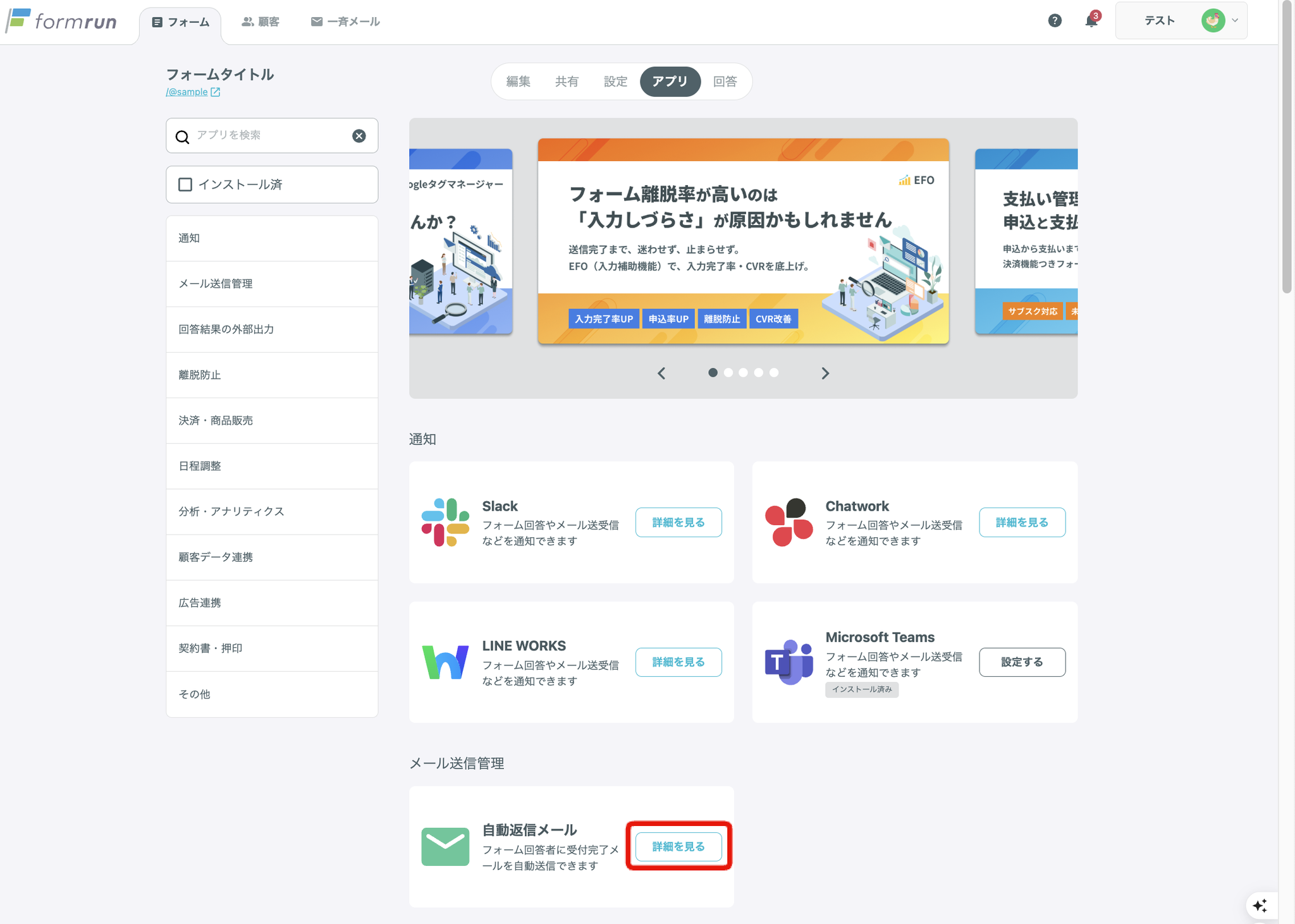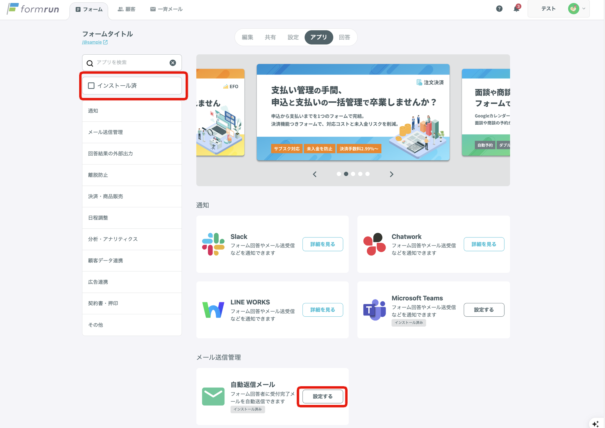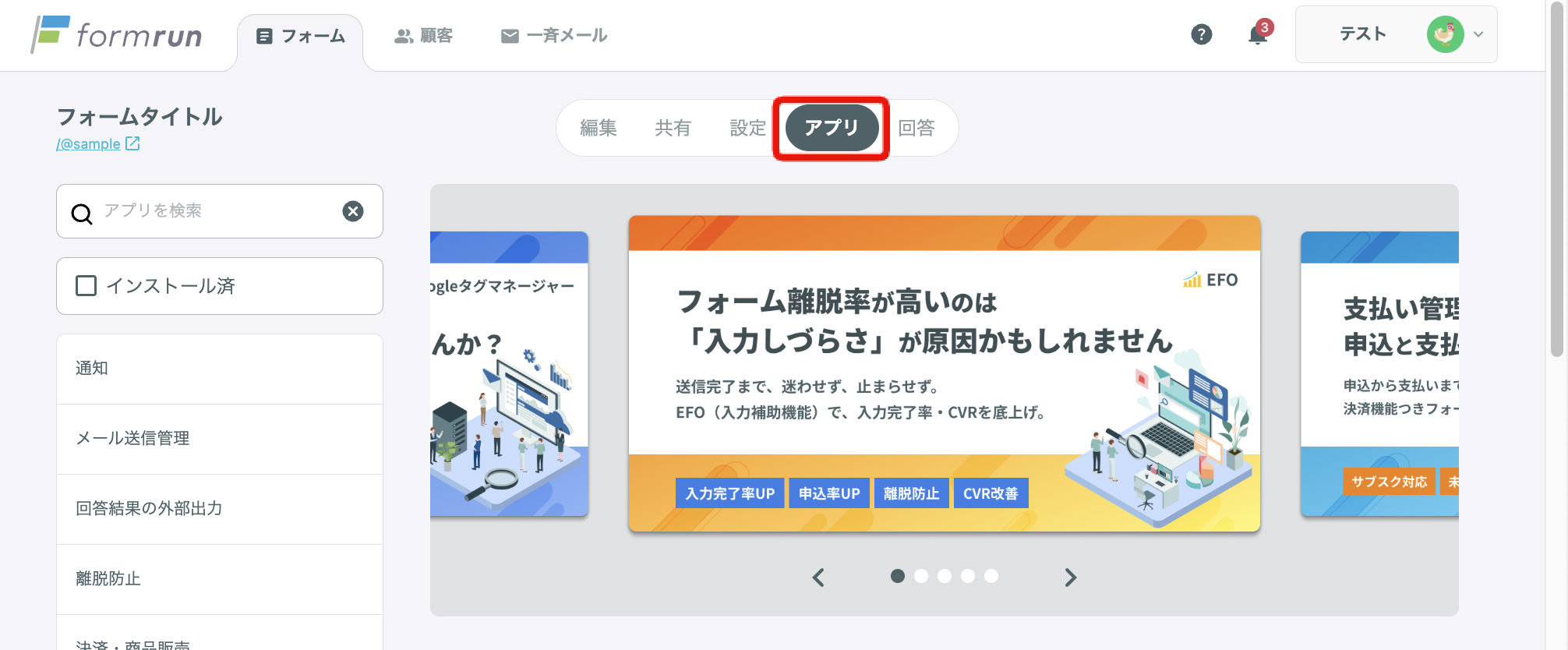 アプリとは、formrunに便利な機能を追加できる拡張機能です。