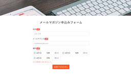 よく使う項目メールアドレス名前名前(姓名別)電話番号性別生年月日住所都道府県職業業種認知経路規約に同意する便利な項目1行テキスト複数行テキスト数値評価ボタン尺度ボタン選択「その他」を選択時に詳細を入力してもらう方法選択可能数の上限・下限を指定する方法複数の選択肢の一括追加方法選択肢ごとの受付数を制限する方法画像選択選択可能数の上限・下限を指定する方法選択肢ごとの受付数を制限する方法マトリックス選択ファイルアップロード条件分岐選択メール配信希望(STARTERプラン以上)日付選択日程調整(bookrun)商品購入(決済機能)高度な機能hidden テキスト(STARTERプラン以上)ブロックリッチテキストメディア埋め込み説明テキスト・画像・セクションについて送信ボタン
