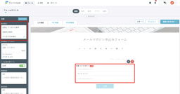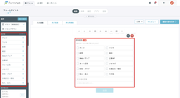 - 「商品」より、商品設定画面にて登録した商品を選択し、フォーム上に商品を設置する