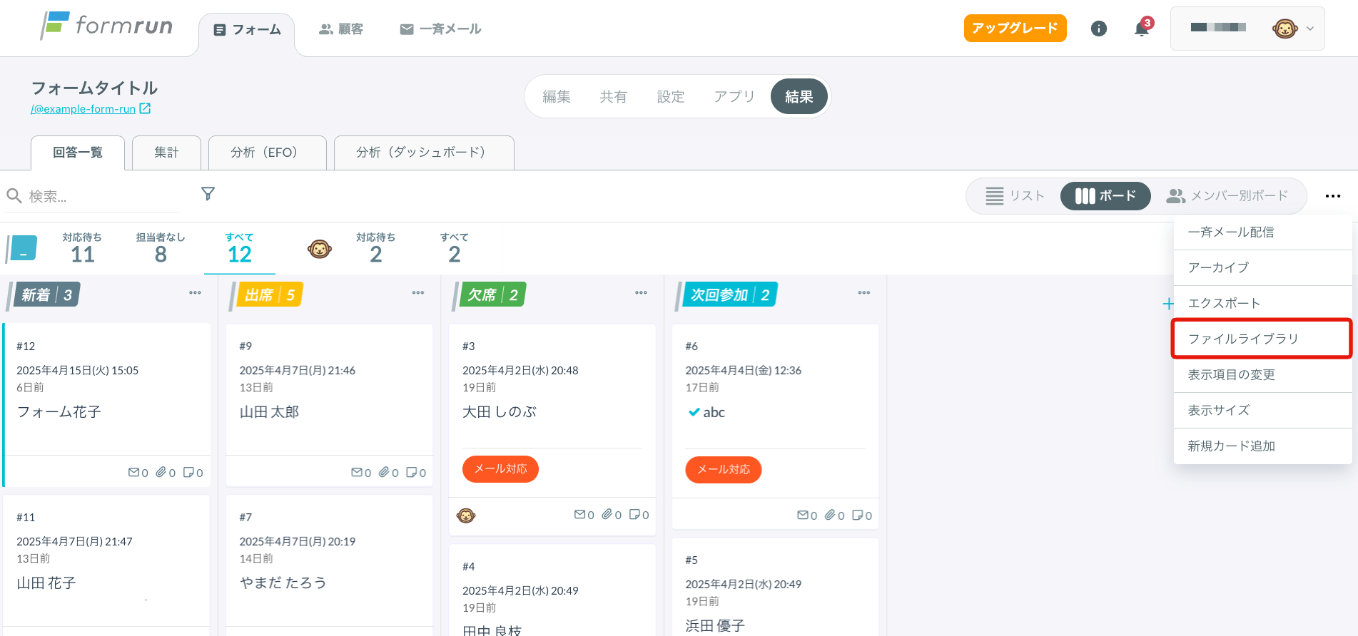 この保存容量はチーム単位で管理され、プランによって上限が異なります。また、添付ファイルは各フォームのファイルライブラリに保存されます。