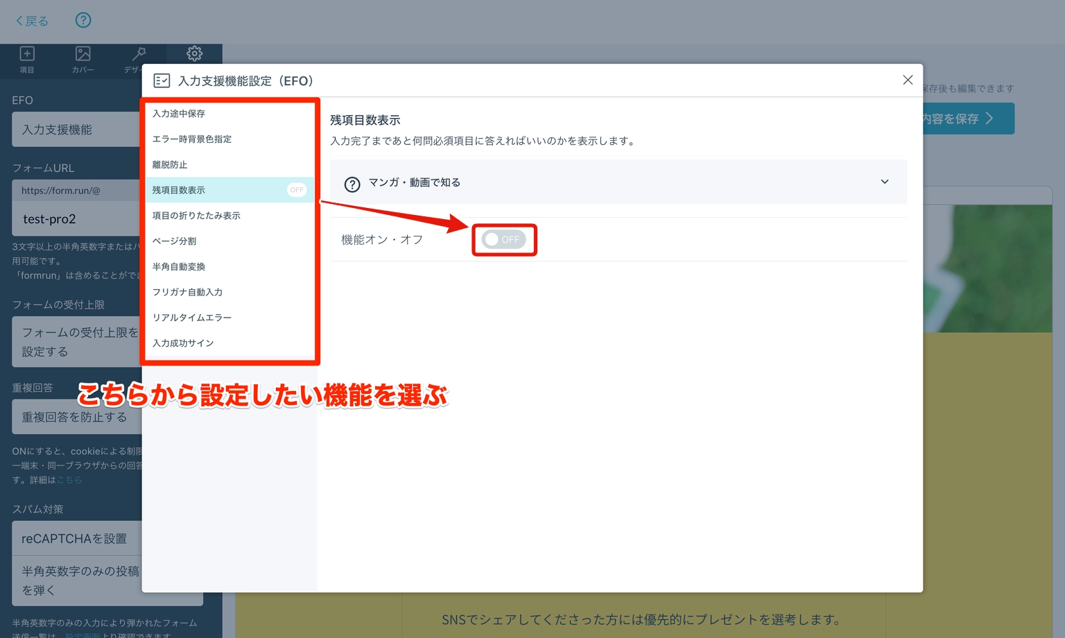 formrunでは、こうした離脱要因に合わせて、離脱を防ぐ機能を用意しています。