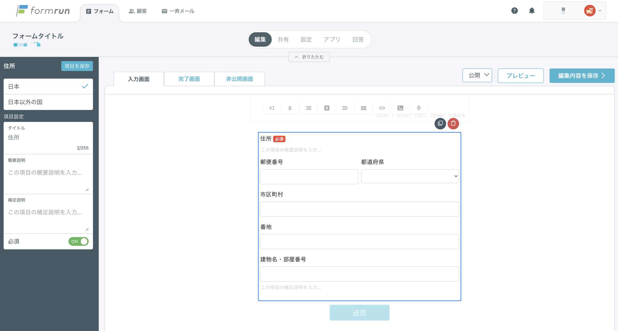 例として、「名前」や「住所」などの項目が該当します。フォーム編集画面のアップデートにより、これらの項目の仕様が変更され、古いバージョンの項目は新規に設置できなくなりました。